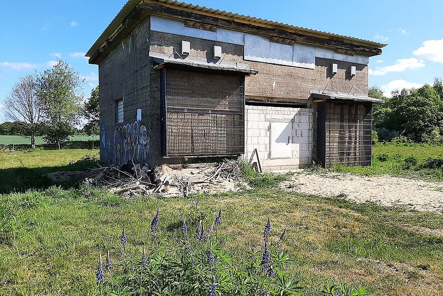 Auf einer Exkursion am Nachmittag stellten René Seifert und Matthias Göttsche großräumige Gebäudequartiere vor, die im letzten Herbst durch das Bündnis Naturschutz im Rahmen des Triko-Projektes auf Flächen der Stiftung Naturschutz Schleswig-Holstein in Schafstedt eingerichtet wurden. Verschiedene Spalten bietende Strukturen in den Gebäuden ermöglichen künftig eine Winterquartiernutzung. Kästen sowie Bleche an der Außenfassade dienen unterschiedlichen Arten als Sommer- und Zwischenquartier. Neue Offenbodenstellen und Wildpflanzenansaaten mit Regio-Saatgut in der umgebenden extensiven Weidelandschaft erhöhen zusätzlich die Attraktivität als Jagdhabitate und dienen zugleich weiteren Zielarten, wie der Zauneidechse.
