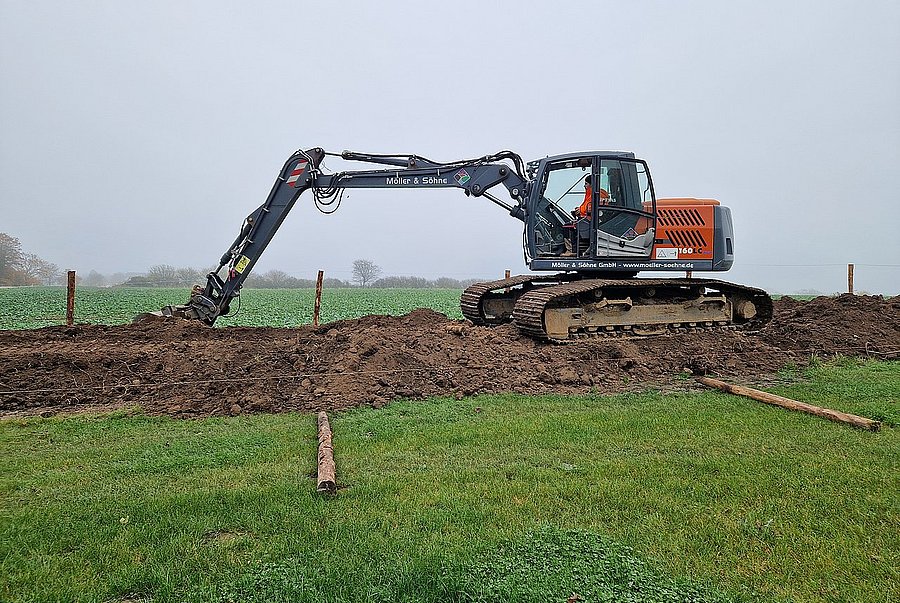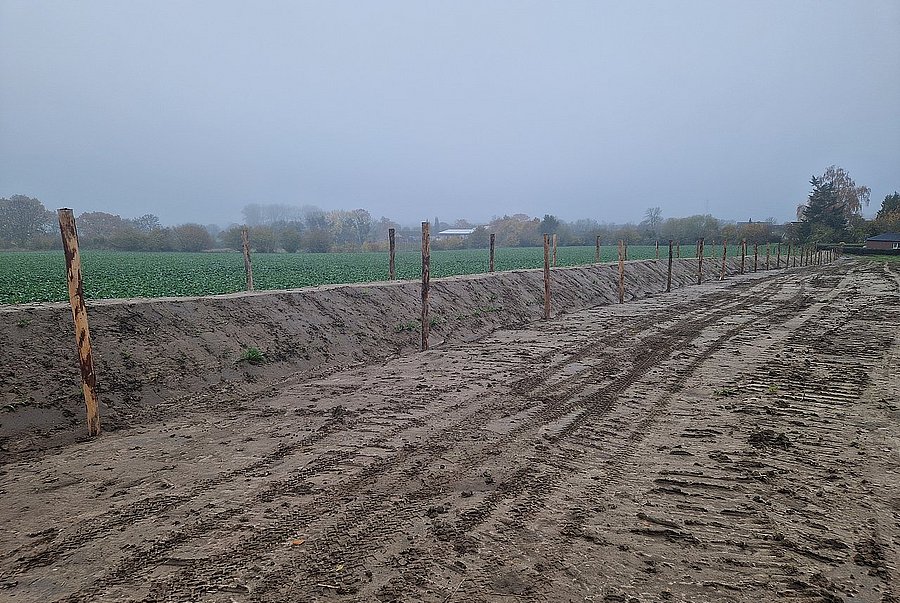 Ende Oktober wurde auf einem Ferienhof in Groß Timmendorf ein Knickwall mit einer Länge von 230 m aufgesetzt. Dieser wurde Anfang Dezember mit einer Auswahl an standortangepassten Gehölzarten sowie Überhältern bepflanzt und mit einem Wildschutzzaun versehen.